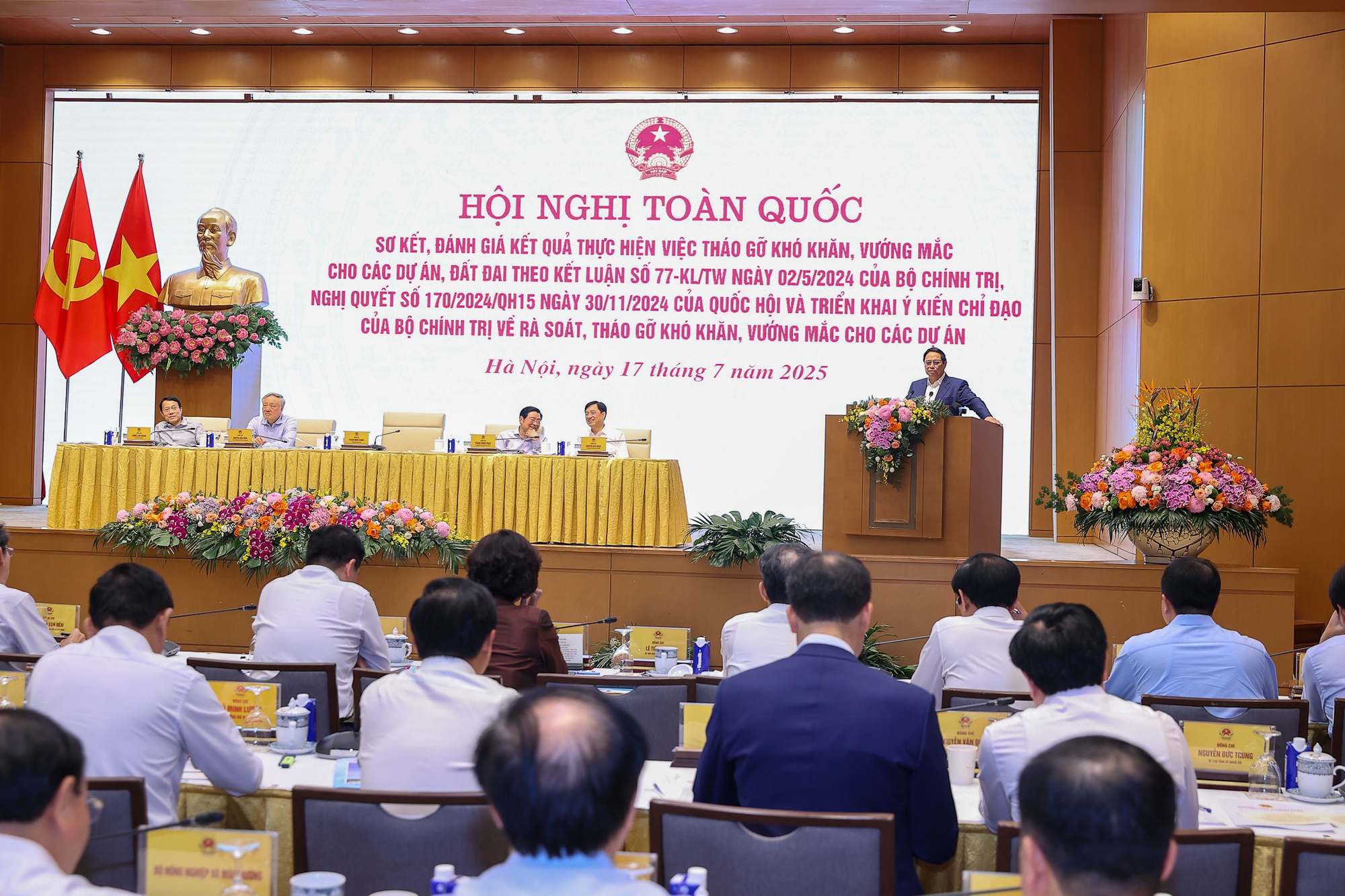Tổng Bí thư Tô Lâm dự "Lễ công bố Nghị quyết của Quốc hội về sáp nhập tỉnh, thành phố cùng các quyết định của Trung ương Đảng thành lập đảng bộ tỉnh và nhân sự lãnh đạo địa phương" tại TP.HCM. Ảnh: Chinhphu.vn.